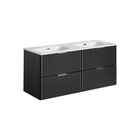 Badmöbel Waschtisch Set 3-teilig in Wotan Eiche/Schwarz